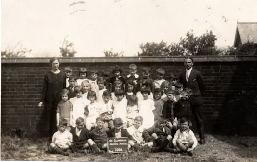The School House c.1927. Headmaster's son, John Fordham, standing at the front. Courtesy Anne Cooper