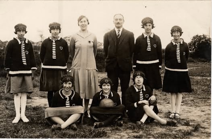 Teacher Olive Summers. Back row: Joy Lee, Mary Pollard, Ada Saunders, Ethel Edwards